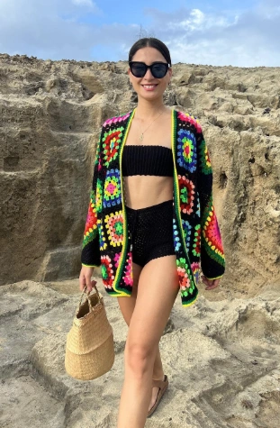Vibrant blend of a colorful crochet cardigan paired effortlessly with black shorts crochet. The lightweight fabric kept me cool while the playful patterns turned heads. Trust me, you’ll feel chic and comfortable, and the crochet details add that unique touch everyone will admire!