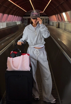 Perfect for those who prioritize both comfort and fashion during travel, this outfit is designed to keep you looking fabulous as you jet-set to your next adventure.
